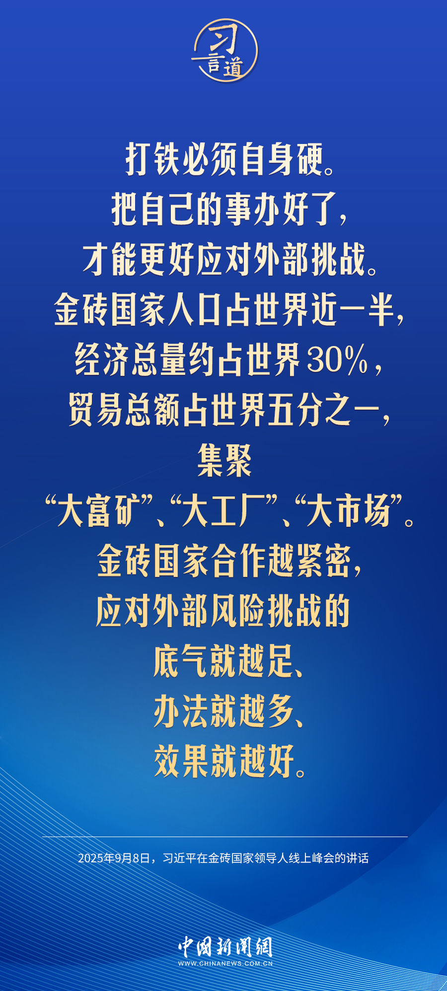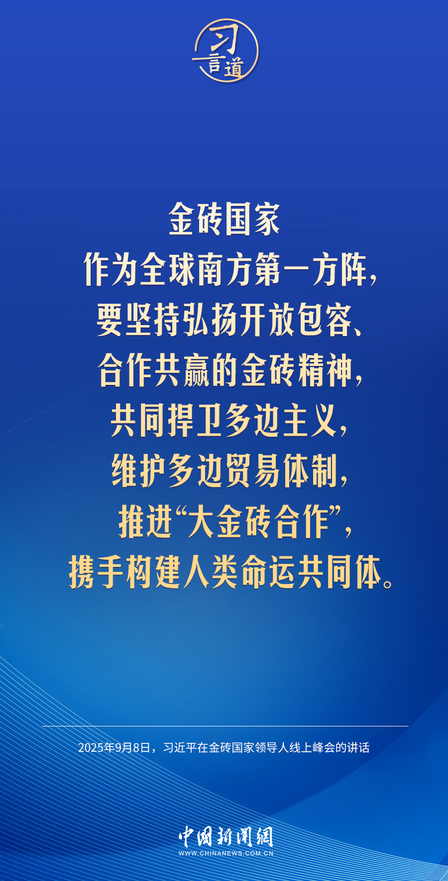 9月8日,国家主席习近平在北京以视频方式出席金砖国家领导人线上峰会并发表重要讲话。习近平指出——