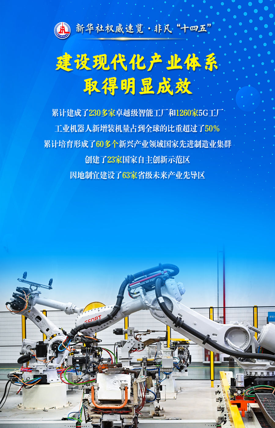 传统产业改造升级、新兴产业培育壮大、未来产业前瞻布局,建设以先进制造业为骨干的现代化产业体系取得明显成效。在国新办8日举行的“高质量完成‘十四五’规划”发布会上,工业和信息化部介绍了“十四五”时期大力推进新型工业化、巩固壮大实体经济根基有关情况。跟随海报,一起了解。