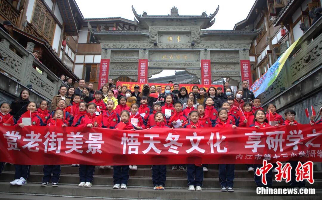 2023年2月,内江十三小于东兴老街开展中医药文化进校园活动。内江市东兴区委宣传部供图