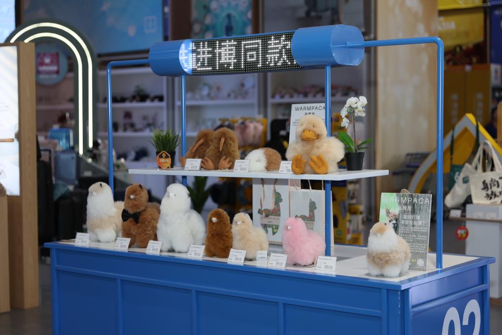 图为虹桥品汇展示展销的“进博同款”秘鲁羊驼玩偶。新华社记者 王翔 摄