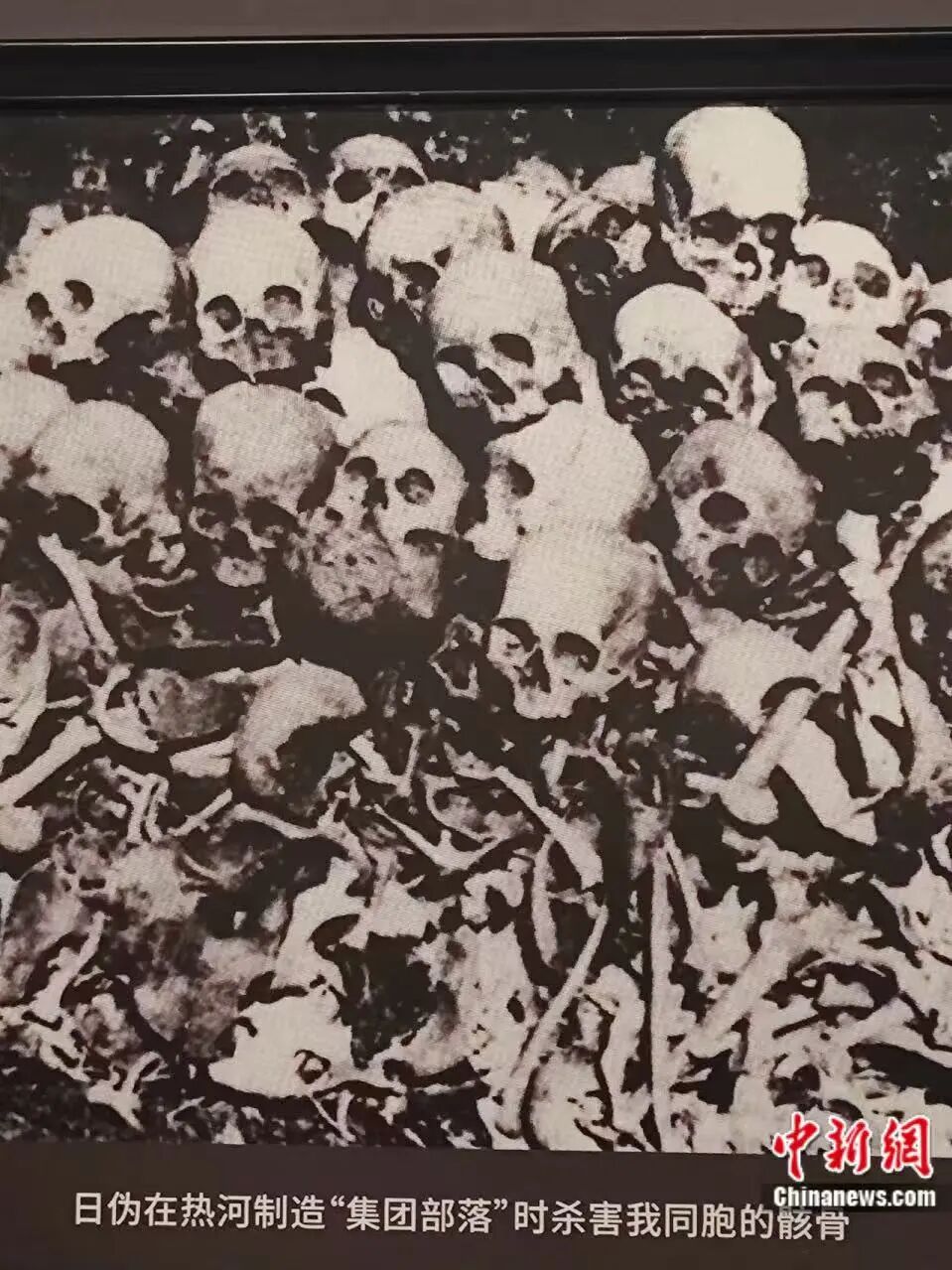 沈阳“九·一八”历史博物馆,日伪在热河制造“集团部落”时杀害我同胞的骸骨。杨茜茜 摄