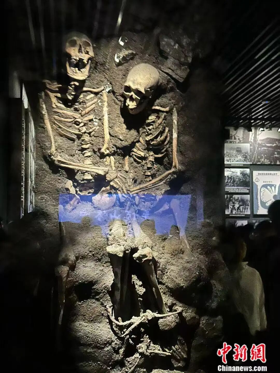 沈阳“九·一八”历史博物馆 ,被日军活埋在一起的白骨。杨茜茜 摄