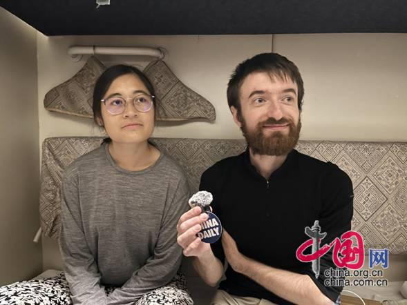 来自法国的旅客Guillaume Pattier和Lise Dubos接受记者采访。中国网记者 唐佳蕾 摄