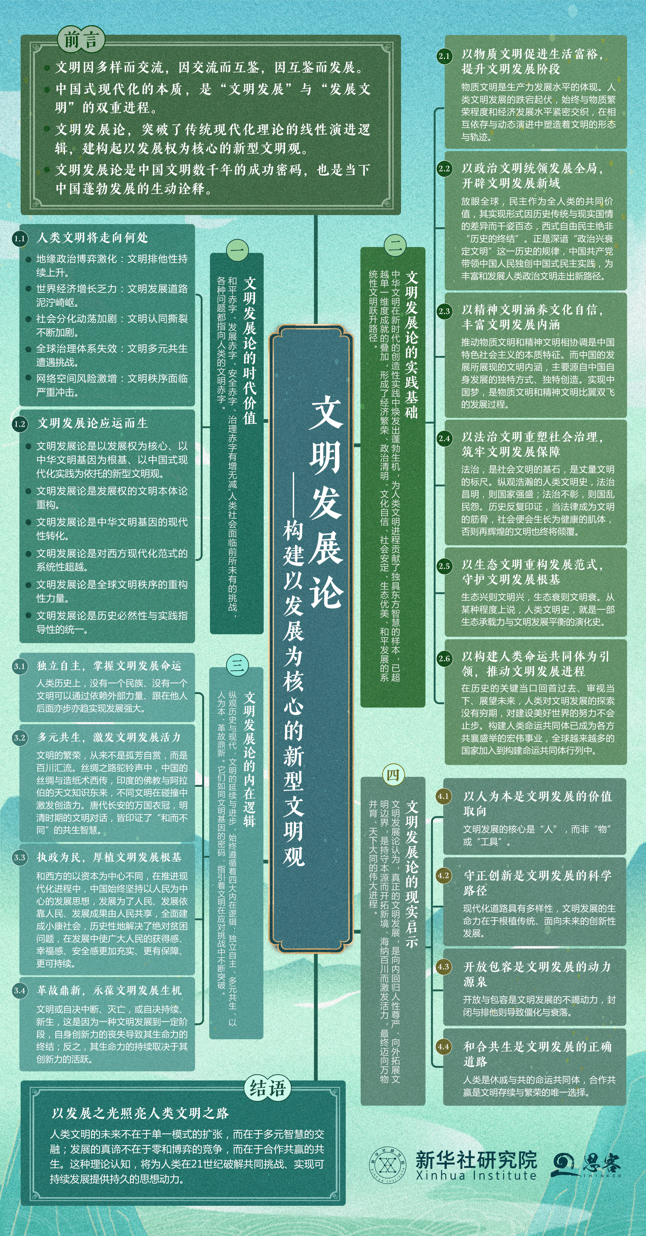 思维导图来了!一图了解《文明发展论——构建以发展为核心的新型文明观》智库报告