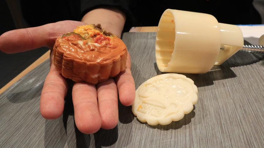 年轻人压制成的“汉堡月饼”。 新华社记者 樊欣阳 摄
