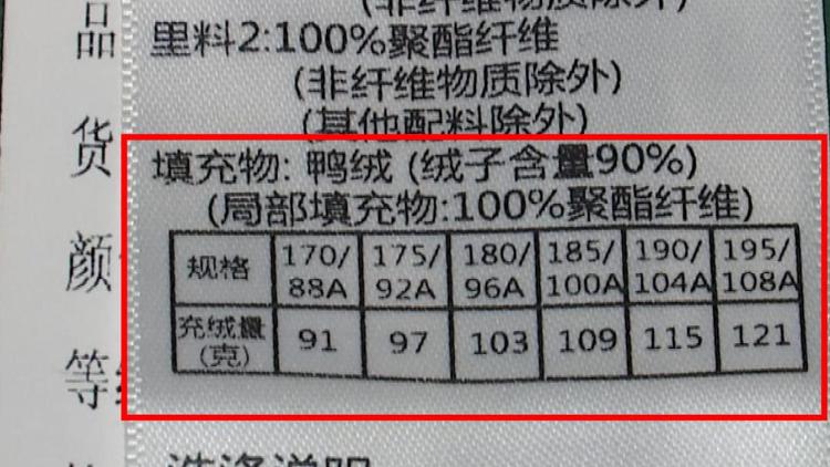 2.看绒子含量:数字越高,保暖性越好。常见的有70%、80%、90%,可根据需求选择。