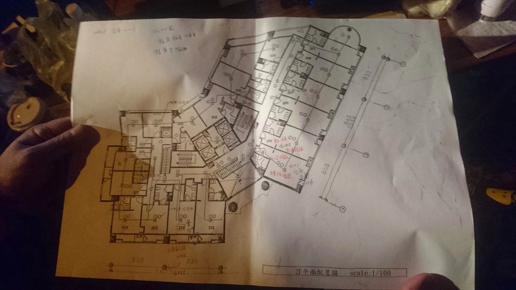 凌晨2时33分,搜救人员打穿213的天花板,经探测仪测量,消防署特搜与日本特搜仪器不约而同侦测的人的反应。