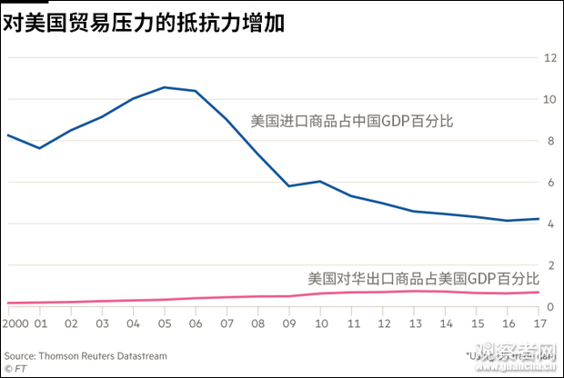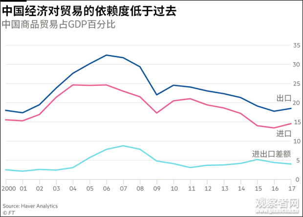 中国有数量庞大的高技能人员,中国经济对贸易的依赖度也低于过去,现在的美国企业也高度参与并依赖于中国经济。