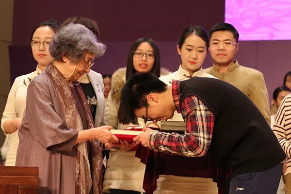 2017年12月21日晚,叶嘉莹先生出席第二十一届叶氏驼庵奖学金、第十三届蔡章阁奖助学金颁奖典礼,并致辞与颁奖。