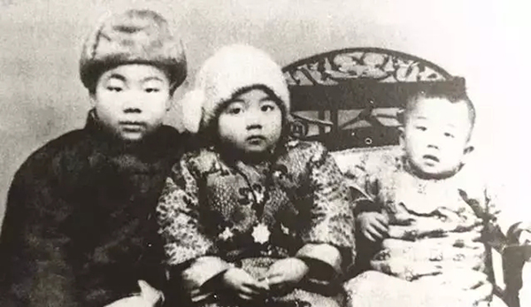 叶嘉莹先生三岁时与小舅李棪(左)及大弟叶嘉谋(右)合影。