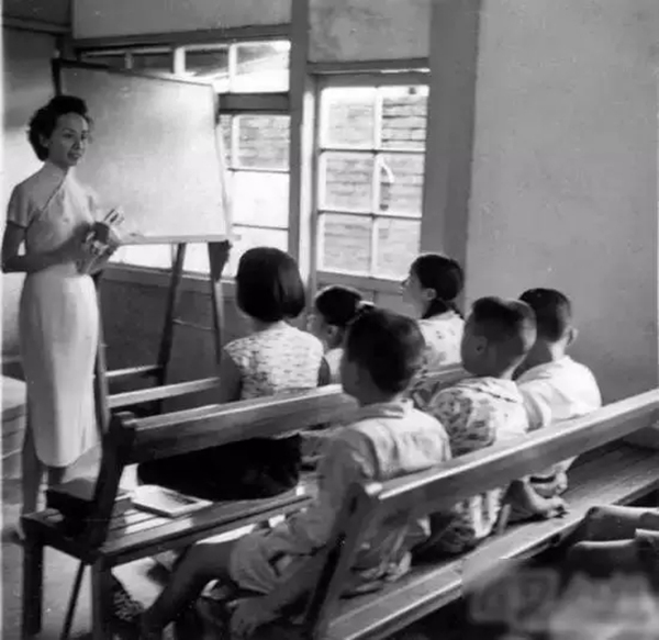 年轻的叶嘉莹先生为孩子们上课。