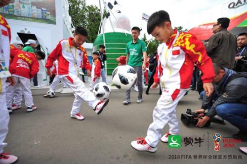 14日, 2018 FIFA 世界杯终于在俄罗斯首都莫斯科拉开大幕。卢日尼基体育场的八万名观众的把第一次的全场掌声,献给了一群特殊的中国球员——他们是11名从蒙牛“踢球吧!少年强”活动中脱颖而出的足球少年。开幕式前,他们进入球场精彩亮相,向全世界球迷展示了中国足球的未来风采。这是世界杯历史上第一次有小球员登上赛场中央,也是中国青少年足球运动的历史性突破。
