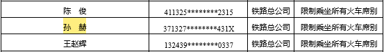国家公共信用信息中心网站3日发布《8月份新增失信联合惩戒对象公示及公告情况说明》,新增因严重失信行为而限制乘坐火车严重失信人247人。记者注意到,高铁“霸座男”孙赫出现在“黑名单”中,被限制乘坐所有火车席别。