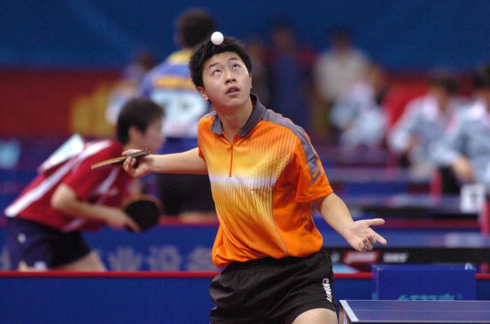2005年10月11日,北京队选手马龙在第十届全国运动会乒乓球男子团体小组赛中。最终,北京队无缘八强。新华社记者 朱力 摄