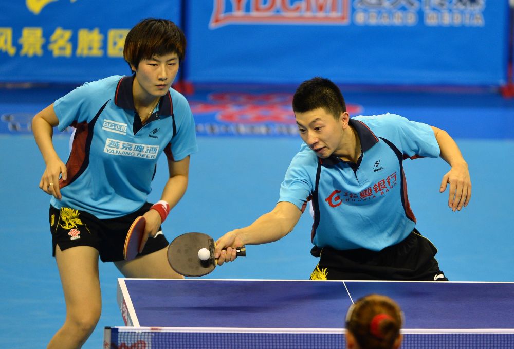 2013年9月7日,北京队组合马龙(右)/丁宁在第十二届全国运动会乒乓球混合双打决赛中。最终,他们夺得冠军。新华社记者 朱峥 摄