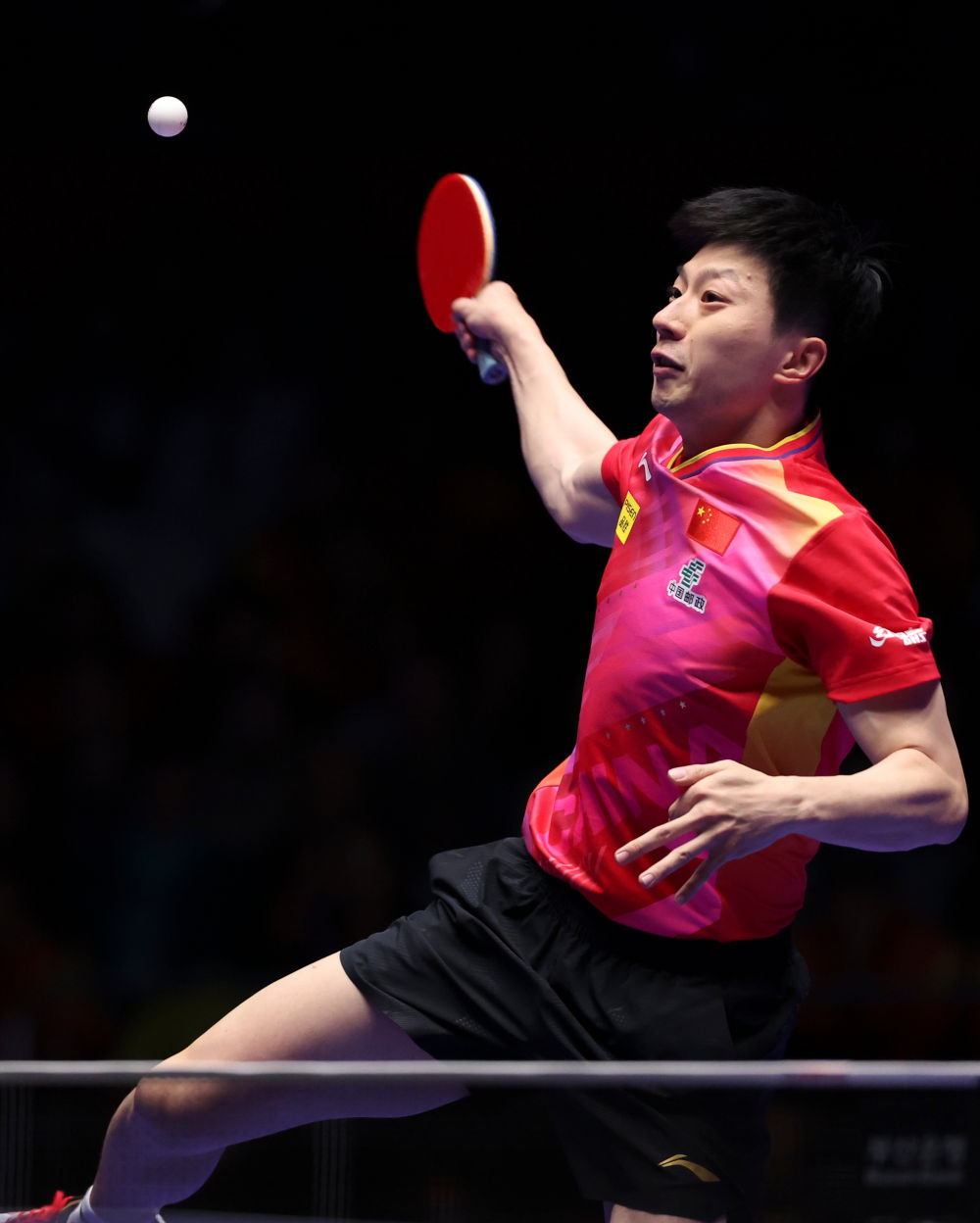 2024年2月25日,马龙在韩国釜山进行的2024年国际乒联釜山世界乒乓球团体锦标赛男子团体决赛中回球。最终,中国队3比0战胜法国队,获得冠军。新华社记者 姚琪琳 摄