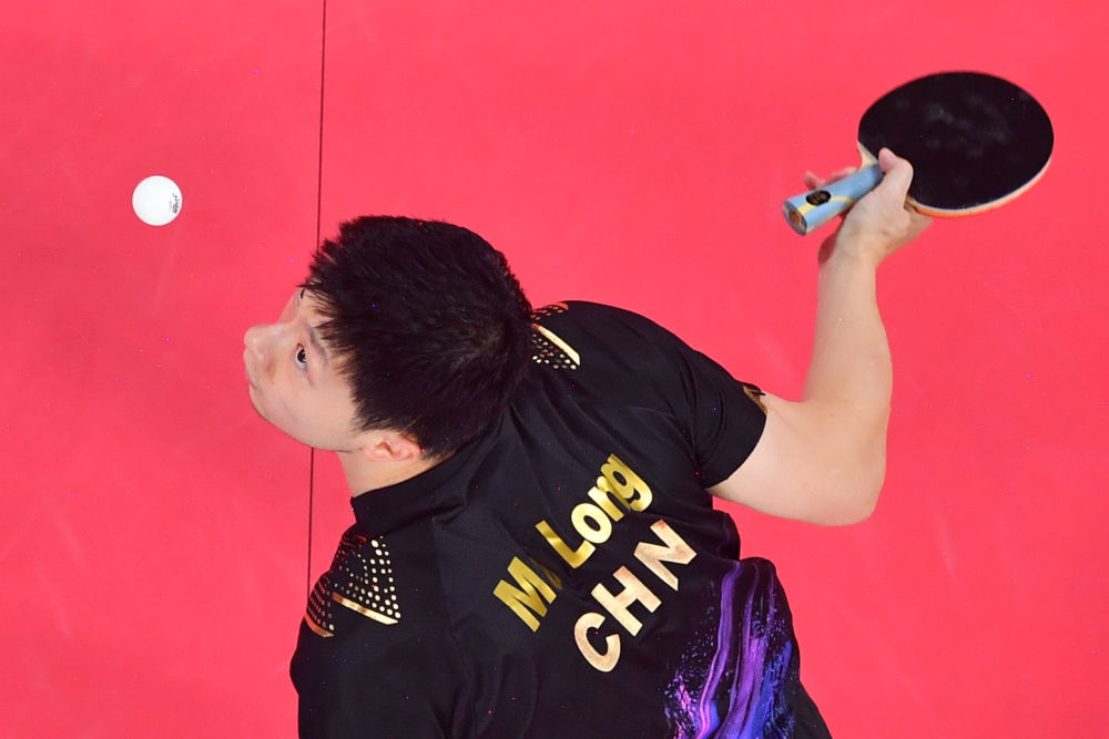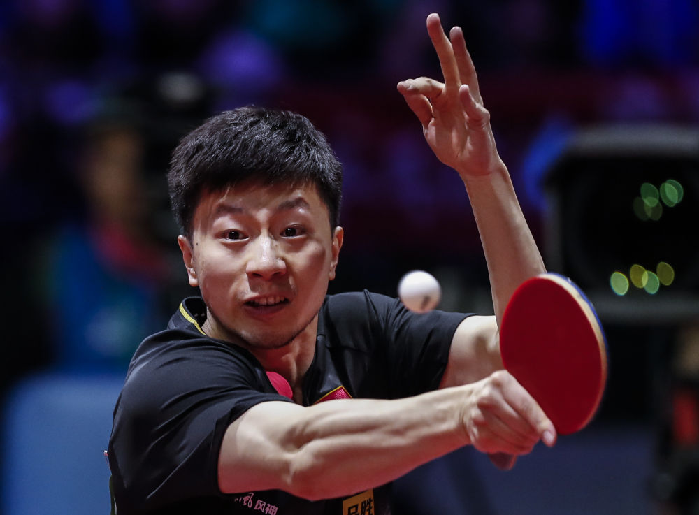 2019年4月28日,马龙在匈牙利布达佩斯举行的2019世界乒乓球锦标赛男单决赛中回球。最终,他夺得冠军。新华社记者 韩岩 摄