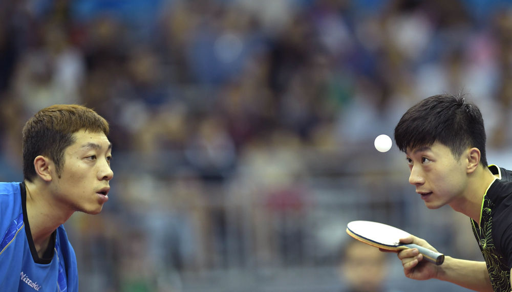 2016年8月11日,在里约奥运会乒乓球男子单打决赛中,马龙4比0战胜张继科,获得金牌。新华社记者 蔺以光 摄