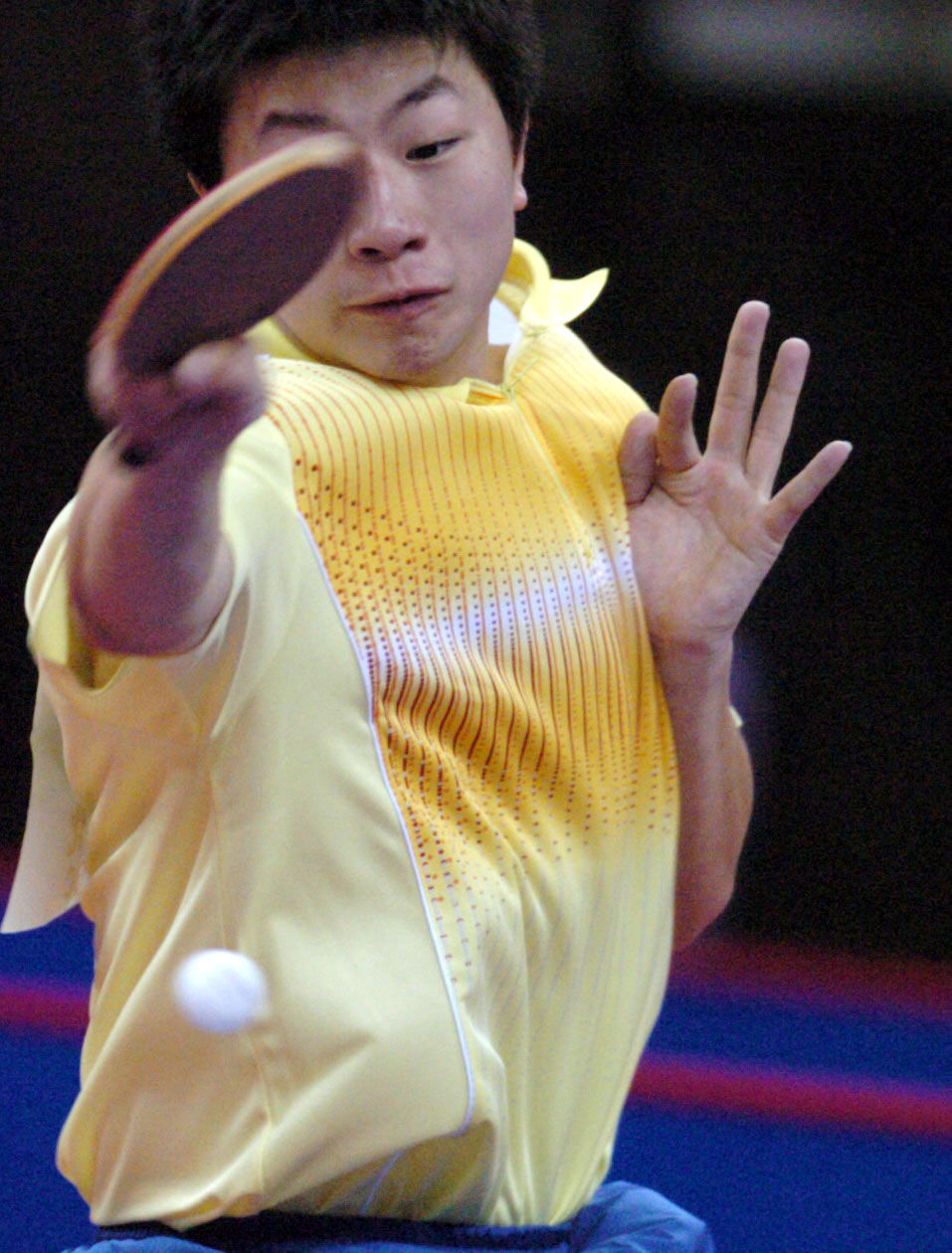2005年10月18日,北京队选手马龙在第十届全国运动会乒乓球男子单打铜牌赛中。最终,他夺得铜牌。 新华社记者 杨俊江 摄