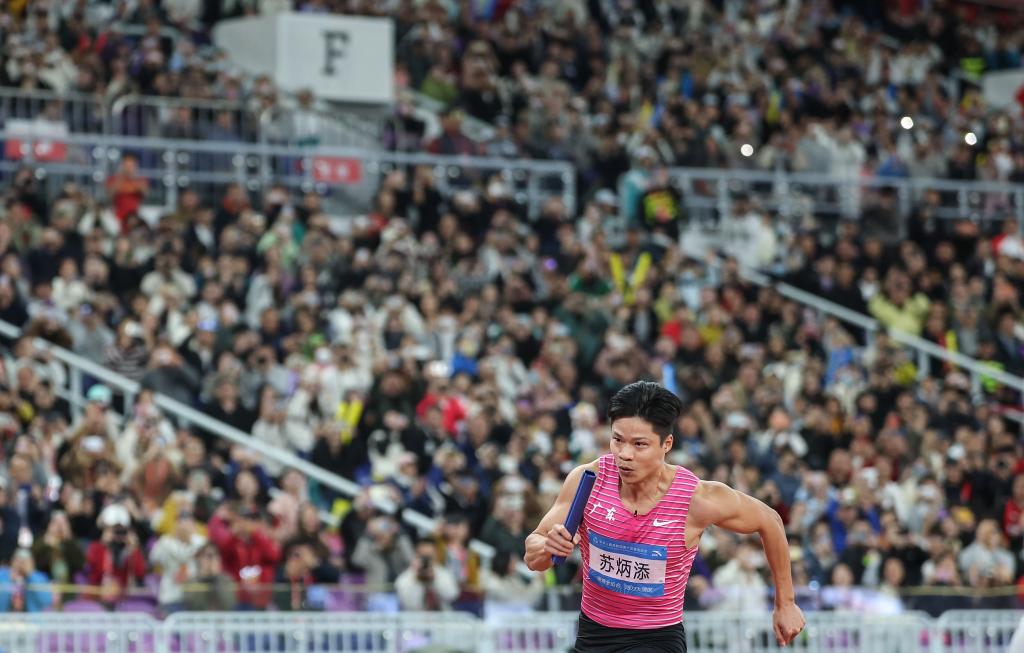 当日,田径项目依然是金牌大户,共产生12枚金牌。36岁的男子100米亚洲纪录保持者苏炳添成为全场焦点,他在家门口的赛道上跑完了职业生涯的最后100米,带领一众“00后”队友为广东队夺得男子4×100米接力第四名。尽管未能帮助家乡队伍站上领奖台,但苏炳添仍赢得了满场掌声。