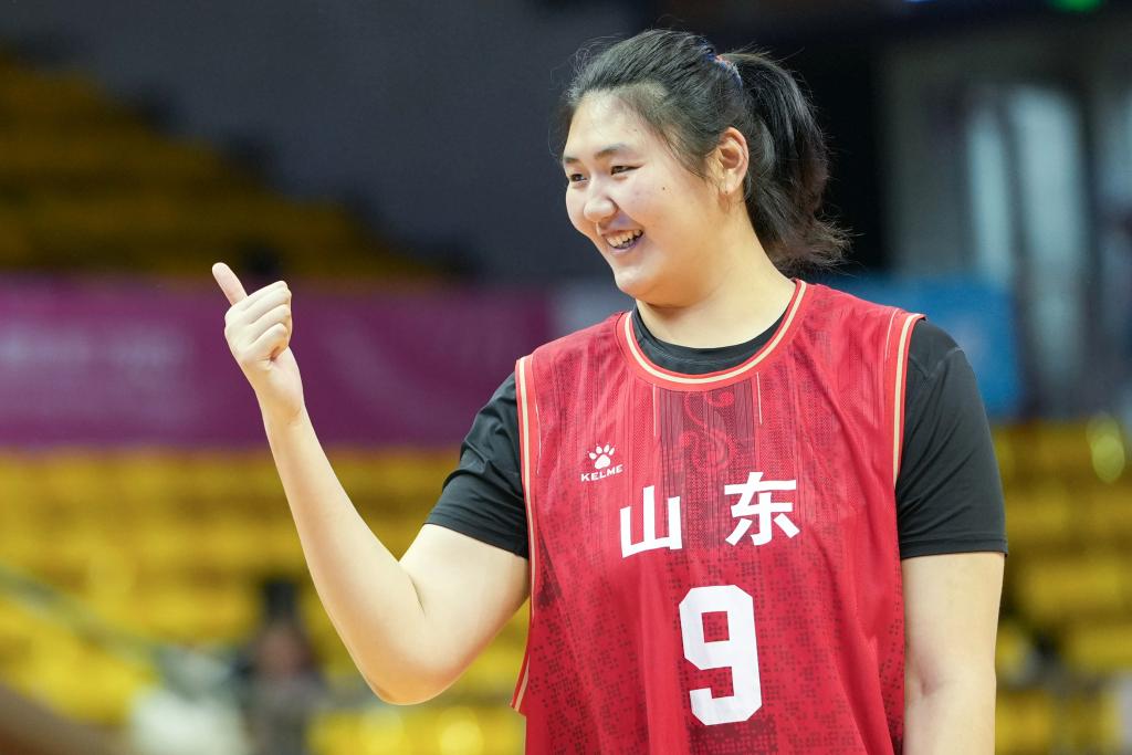11月11日,山东队球员张子宇在女子篮球18岁以下组四分之一决赛中。新华社记者王松摄