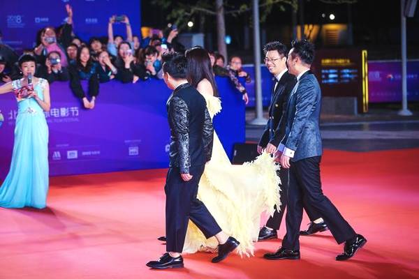 首次亮相电影节,“一出好戏”团盛装出席。导演兼主演黄渤与主演王宝强、于和伟、王迅纷纷身穿深色西装,神采奕奕。舒淇则一身浅黄色露肩长裙明艳动人。上场时,四位男士纷纷为其提裙,十分绅士帅气。虽然是小细节,但也足以看出女神舒淇平时在剧组的“团宠”地位。