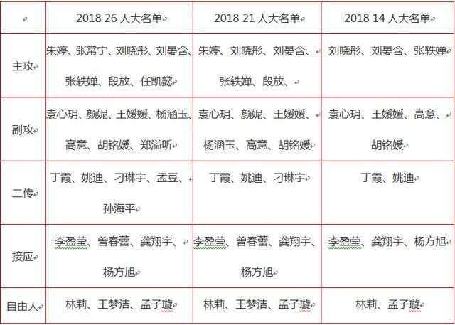 此次14人的大名单包括:主攻:刘晓彤,刘晏含、张轶婵;副攻:袁心玥、高意、王媛媛、胡铭媛;